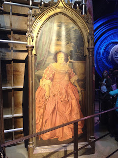 But we got there. I was so excited! We redeemed out tickets and hopped into line, which moved very quickly, and then we were in! The first thing we saw was the Great Hall. Everything was so lifelike, and the detail was amazing, but I guess it has to be for movies like this. There were two house tables set up, with the head table at the front, with several of the professors' costumes.