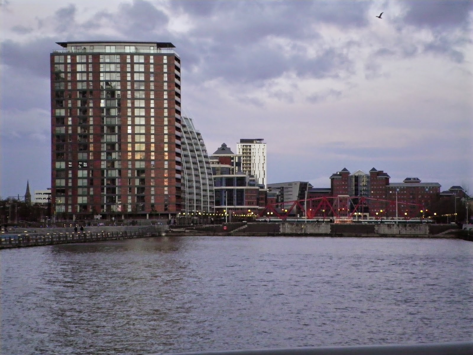 The problem: my friend Francine (who is a native of Manchester and who studies geography) does not have a good sense of direction and got us lost. We were all so busy looking at the approaching BBC tower, and we missed our bus stop. I think we got off just a lot too late. So then we walked, and caught another bus. And rode it for a couple minutes. Then got off again. I think we took 3 busses total. Finally, Katia asked one of the bus drivers where to find Salford Quays, and he pointed us in the right direction. We had been going the wrong way this whole time.