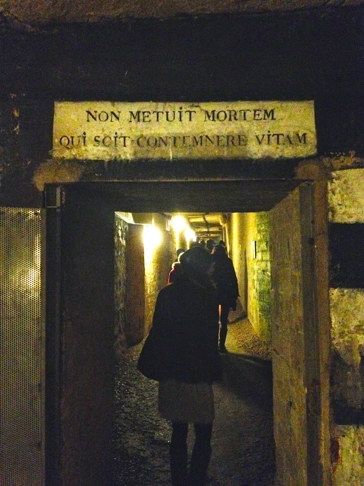There is another archway sign on the way out, and then 83 spiraled stairs that almost killed me (they were much bigger than normal stairs though, so it was more like taking 166 stairs two at a time). I wish we could have exited the catacombs into a beautiful ray of sunshine and warmth to fully appreciate this life, but it was not to be. It was actually still miserable outside and was much warmer in the tunnels.