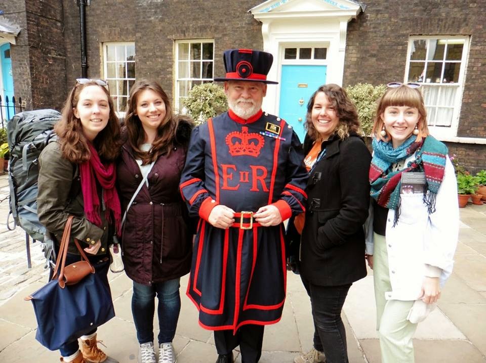 | Mady, Me, the Yeoman Warder, Victoria, and Amy |